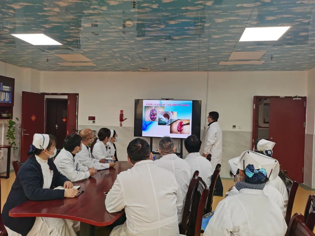 孙平良教授到肛肠科门诊坐诊,为多个慕名而来的患者进行诊断,精准的技术和专业的解答获得了患者的一致好评。在肛肠科,冯福明副主任医师以《注射疗法在肛肠科的应用》为题进行讲课,并在课后开展了教学查房,深入探讨疑难病例的诊疗方案,共同探讨调整治疗方案。同时,冯福明副主任医师通过术前详细诊查评估、制定手术方案,亲自主刀示教了一例IV度脱垂混合痔合并肛裂、肛周湿疹手术。两位专家的技术指导和现场演示教学,让肛肠科的医务人员纷纷表示受益匪浅。