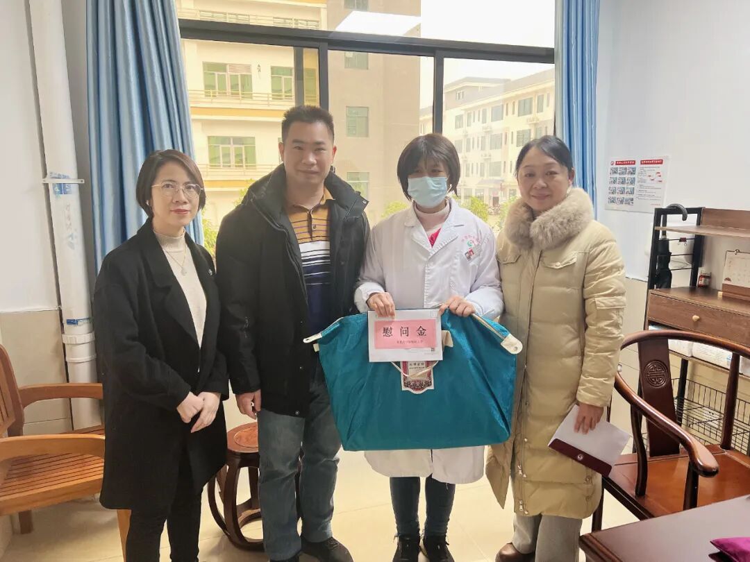 2月8日,太阳成集团tyc4633工会及女工委开展“桂姐姐”暖冬行动。医院党委副书记赵建立,工会主席、副院长陆杰灵,女工委主任俞梅及女工委成员组成慰问小组,为医院6名困难女职工送上节日的祝福。
