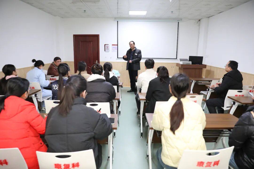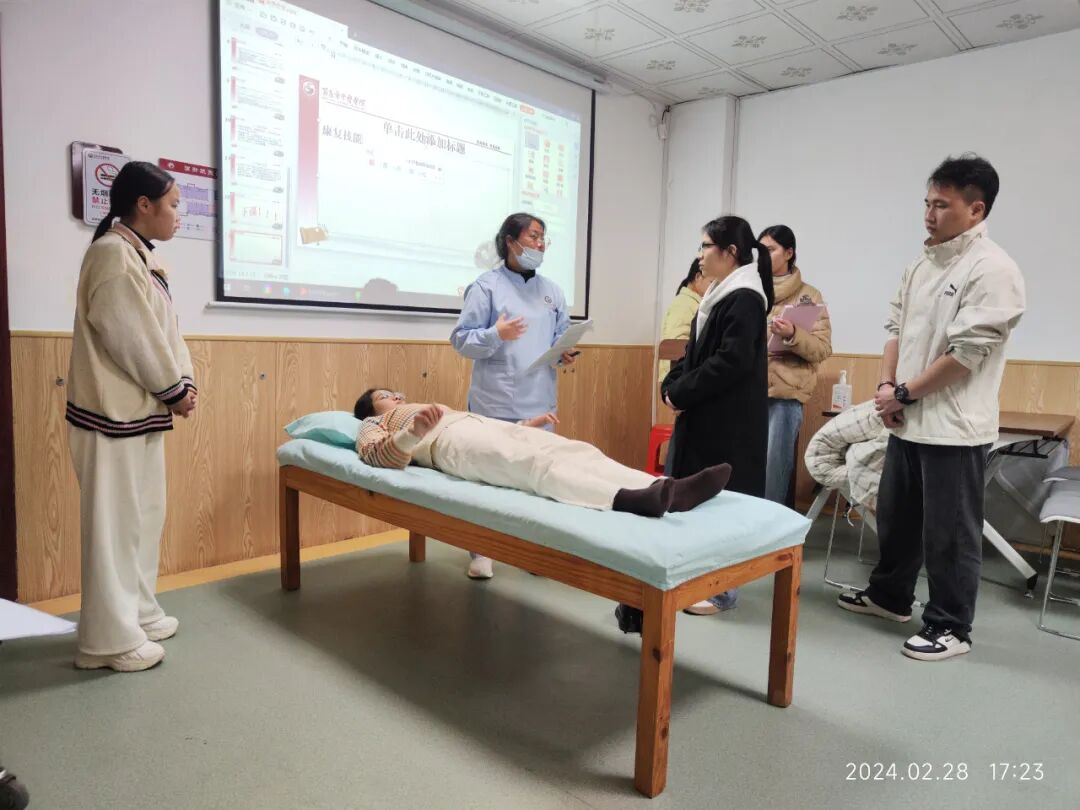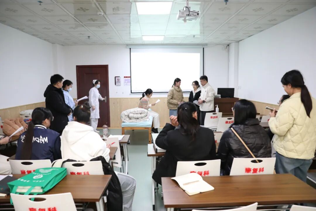下午,韦桂祥副校长一行首先来到我院康复大厅观看康复病人训练,了解医院康复项目。随后,双方到示教室开展康复技术技能交流活动,由交流人员进行实操演示,我院医务人员根据演示内容进行系统、全面、专业的手把手教学与指导。医务人员耐心的教学和扎实的理论功底让交流人员纷纷表示受益匪浅,将学以致用提升自身的技术水平。